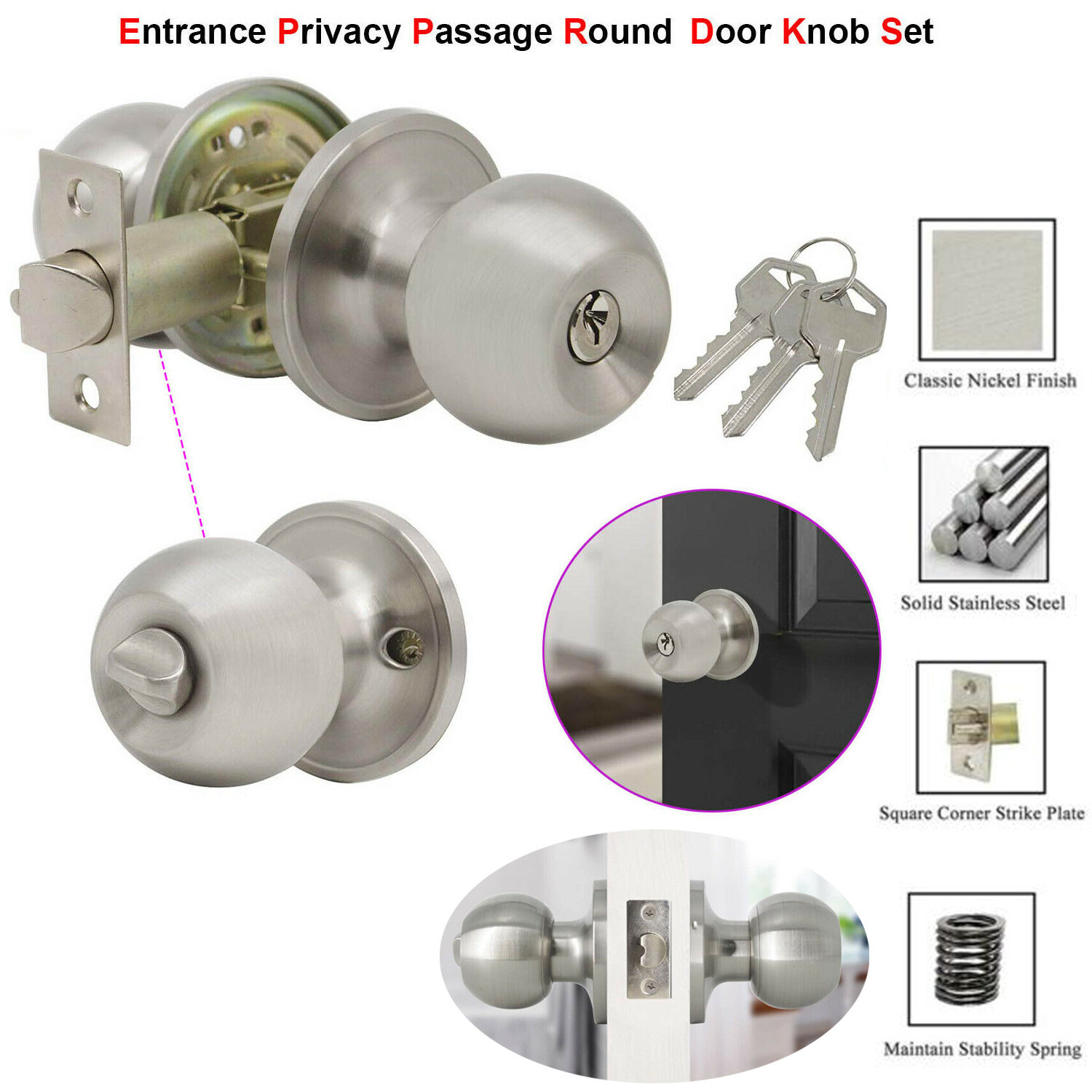 Door Knobs With Lock And 3 Keys Stainless Steel Ball Privacy Entry Doorknob Indoor Handle With Lock Shopee Malaysia